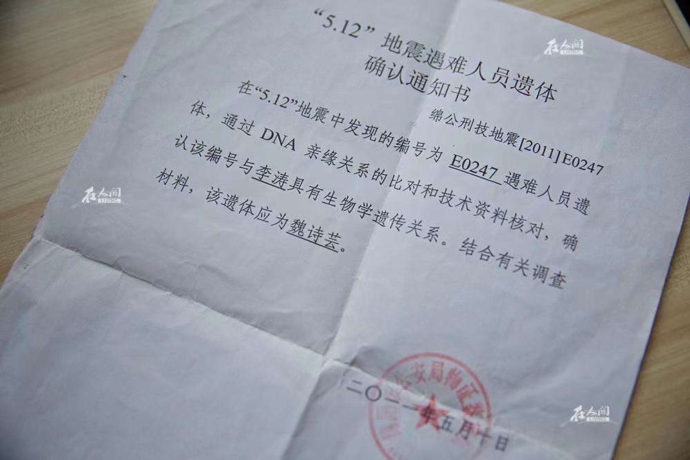 女儿生前是北川中学的学生。2011年5月,李涛收到女儿的遗体确认通知,随后女儿被迁往北川中学旧址安葬。