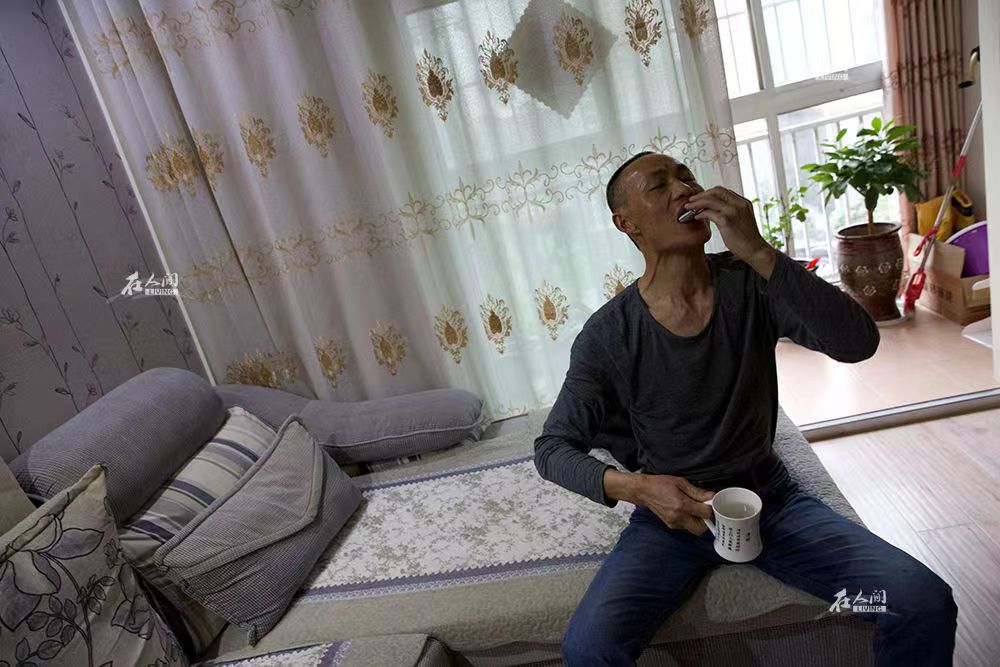 陈川的病无法痊愈,只能靠药物维持。常年的病痛折磨,让他瘦成了皮包骨。大剂量的激素药让陈川变得脾气暴躁,夫妻俩经常爆发口角。“有一次我把电视和冰箱全砸了,本来我们家就没钱,但我真的控制不住情绪。”陈川说。
