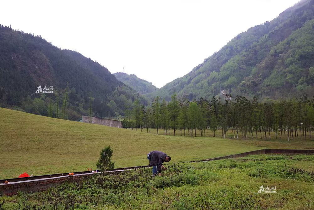 又是一年过去,公墓里的杂草冒出来不少,陈川弯腰拔去。他背后的土山包,就是曾经的北川中学所在地,许多孩子被永远深埋在了这里。