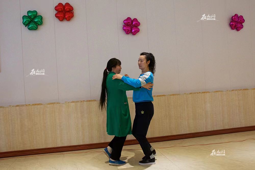 午饭开始前,大家会在大厅里跳会儿交谊舞,平日里经过广场舞人群都不驻足的柔姐这一天显得格外“放得开”。“如果要说快乐,就是跟友友在一起的时候。”在问到十年来什么时候最快乐时,他们这样回答。