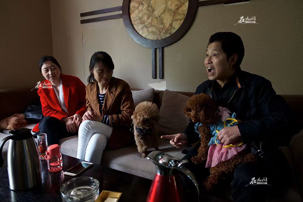 午餐结束,李涛和马英跟几名群友来到一家茶馆,一名来自北川的失独父亲抱着在孩子去世后养的宠物狗,兴奋地说起养它们的好处。