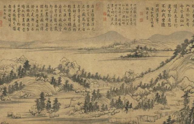 作为此画的收藏者,沈周不仅自己给画题跋,还将画给自己的文人挚友欣赏题跋,但在给友人题跋的过程中,这幅画竟然友人的儿子偷了,还拿出去变卖了。