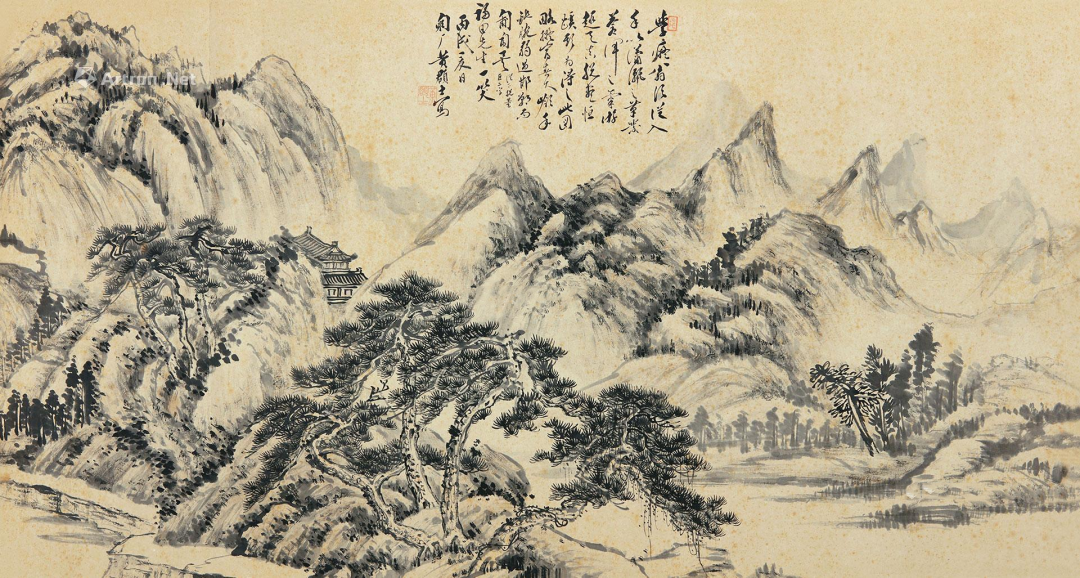他在这幅画里,将他所看到的风景,所悟到的人生,传达了出来,图上山高山低,人间高潮低谷,不过如此。