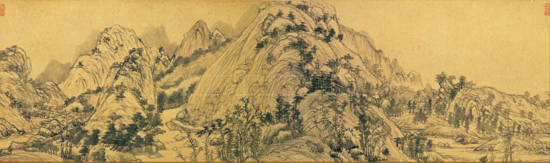 很多年后,人们将沈周背临到图和原图对比,发现每一座山峰的位置、每一棵树的位置,都和原图一致。